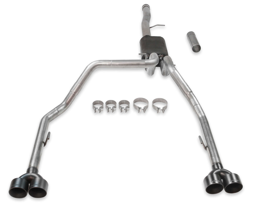 Exhaust System - American Thunder - Cat-Back - 2.5 in Diameter - Dual Rear Exit - Dual 4 in Black Ceramic Tips - Stainless - Natural - 6.2 L - GM Fullsize Truck 2019-21 - Kit