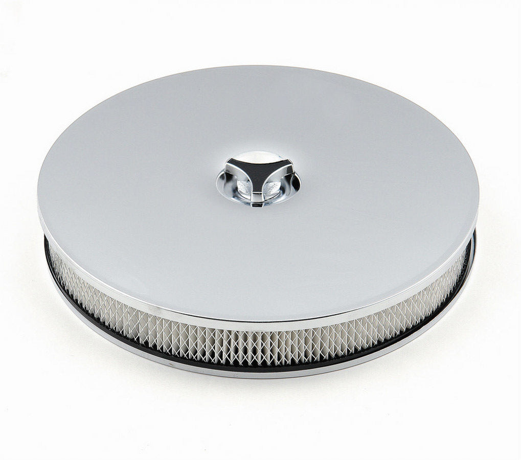 Air Cleaner Assembly - 14 in Round - 2.25 in Tall - 5-1/8 in Carb Flange - Dropped Base - Steel - Chrome - Kit