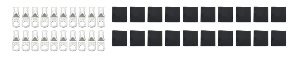 Battery Terminal - 2 Gauge - 3/8 in Eyelet - Heat Shrink Included - Copper - Tin Plated - Set of 20