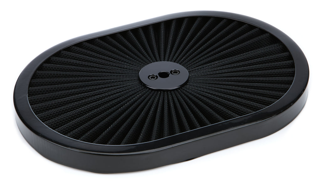 Air Cleaner Lid - Super Flow - Filtered - Black Filter - 12 in Oval - Steel - Black Paint - Each