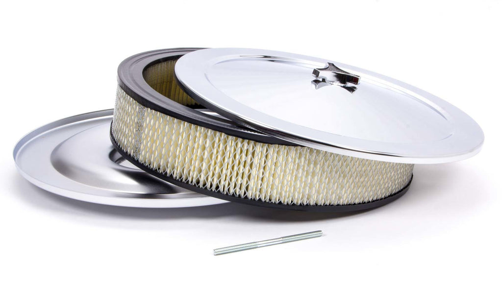 Air Cleaner Assembly - Muscle Car - 14 in Round - 3 in Element - 5-1/8 in Carb Flange - Flat Base - Steel - Chrome - Kit
