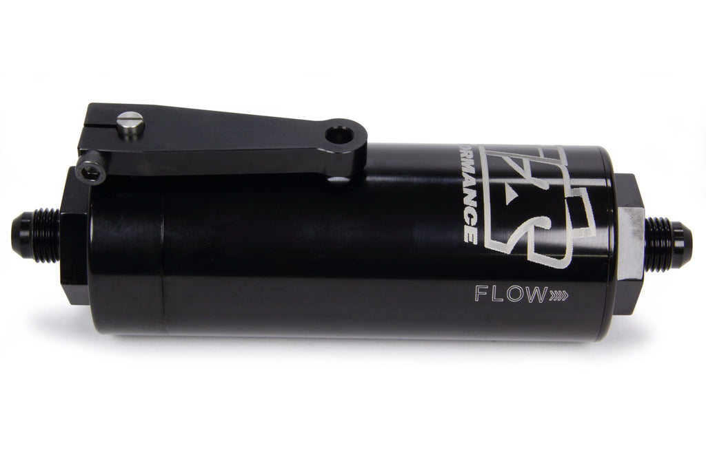 Fuel Filter - In-Line - 100 Micron - Stainless Element - 6 AN Male Inlet - 6 AN Male Outlet - Fuel Shutoff - Aluminum - Black Anodized - Each