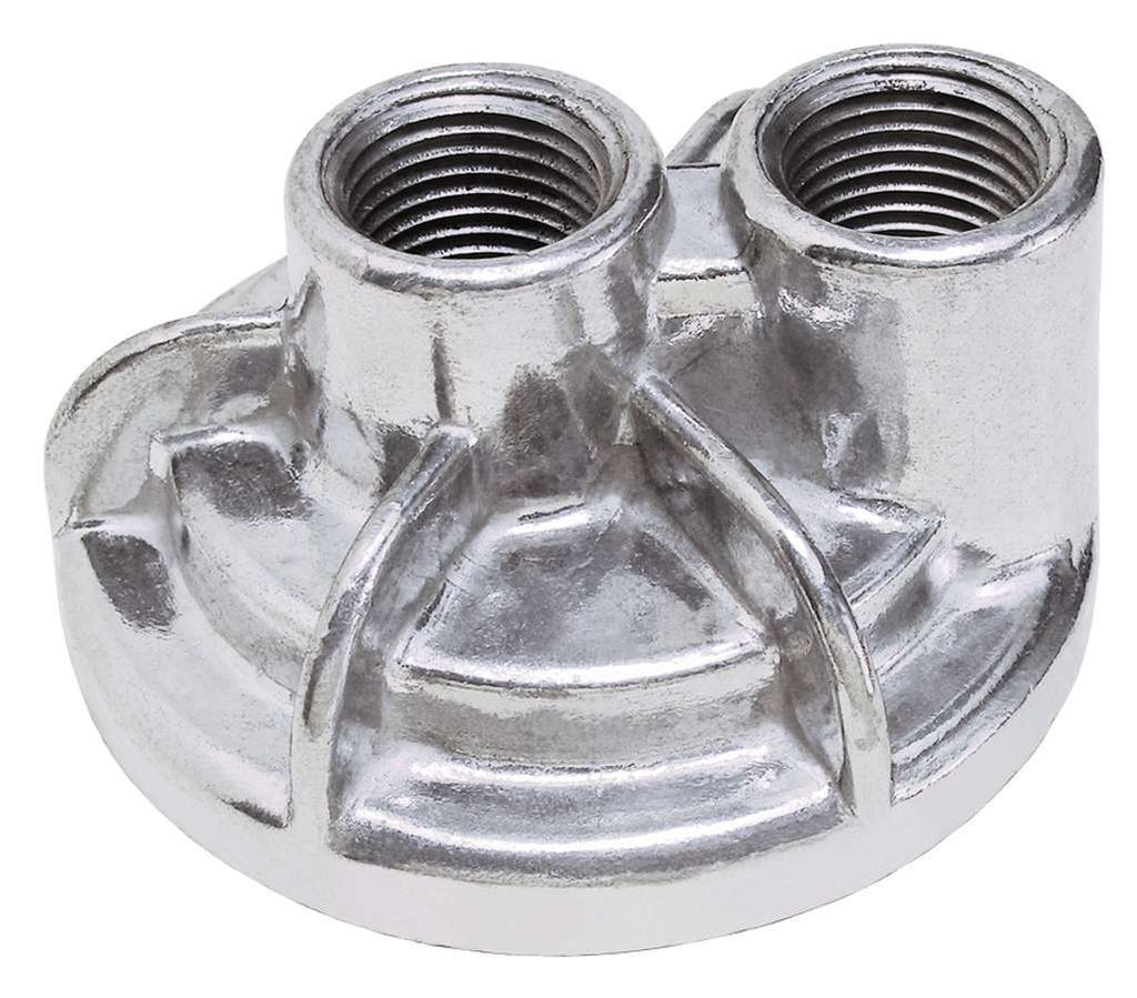 Oil Filter Adapter - Bypass - 3/4-16 in Center Thread - 1/2 in NPT Female Inlet - 1/2 in NPT Female Outlet - Aluminum - Various Applications - Each