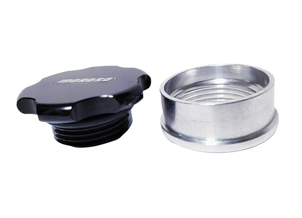 Bung and Cap Kit - 1.25 in Opening - 1-1/4-12 in Thread - Weld-On - Aluminum Bung - Contoured Grip - Aluminum - Black Anodized - Kit