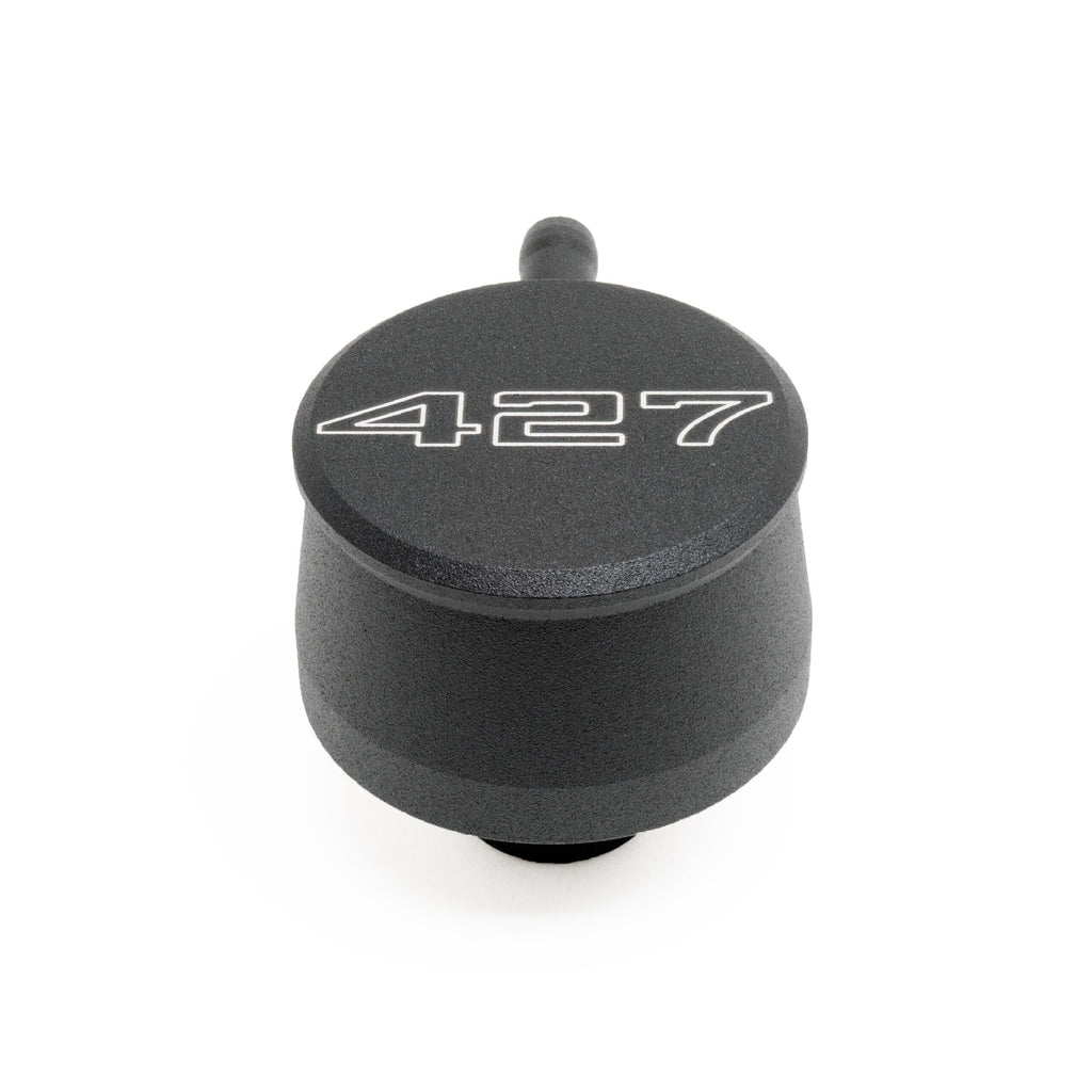 Breather - Push-In - Round - 1-1/4 in Hole - PCV Valve - 427 Script Logo - Aluminum - Black Powder Coat - Each