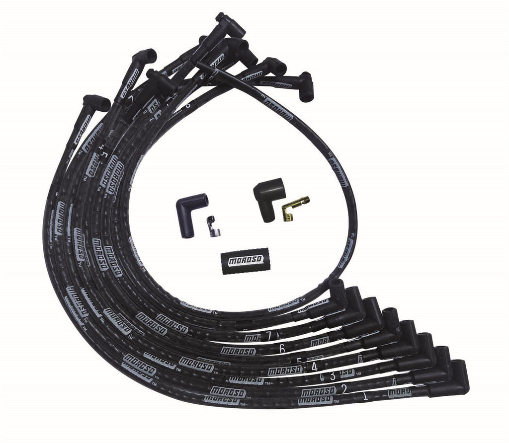 Spark Plug Wire Set - Ultra - Spiral Core - 8 mm - Sleeved - Black - 90 Degree Plug Boots - HEI Style Terminal - Over The Valve Cover - Small Block Chevy - Kit