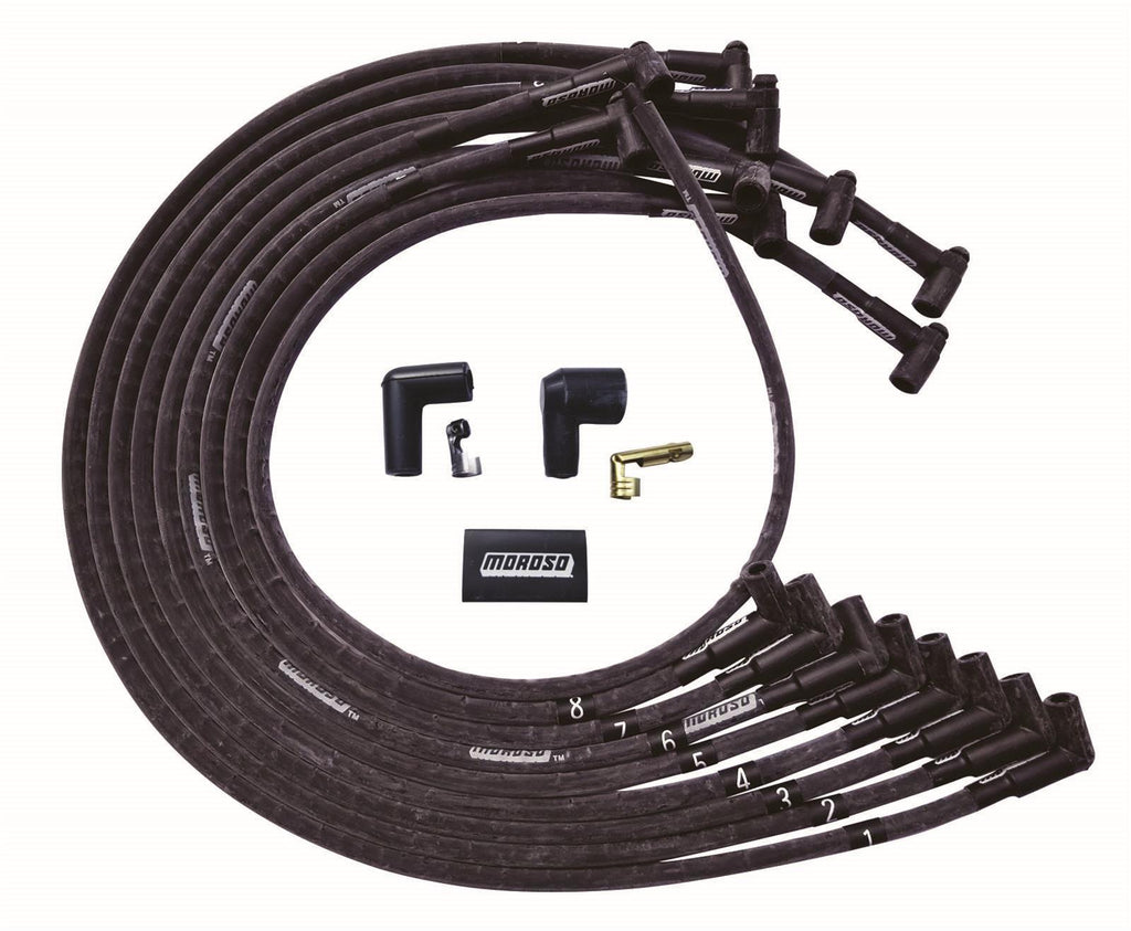 Spark Plug Wire Set - Ultra - Spiral Core - 8 mm - Sleeved - Black - 90 Degree Plug Boots - HEI Style Terminal - Under The Header - Big Block Chevy - Kit