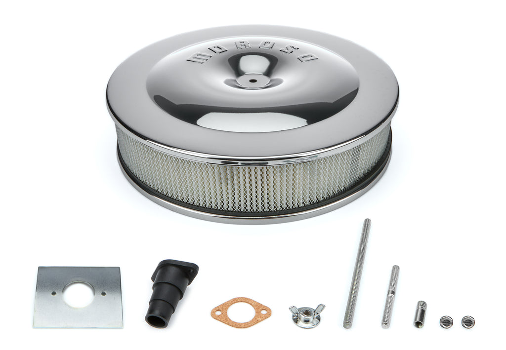 Air Cleaner Assembly - 11.5 in Round - 2.375 in Element - 5-1/8 in Carb Flange - Flat Base - Steel - Chrome - Kit