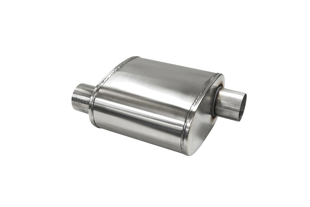 Muffler - Pro Series - 3 in Offset Inlet - 3 in Offset Outlet - 10 x 11 x 6.25 in Oval Body - 16 in Long - Stainless - Natural - Universal - Each