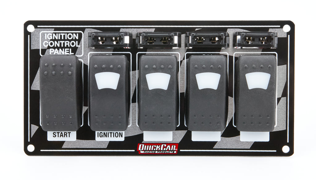 Switch Panel - Dash Mount - 7 x 3.5 in - 4 Rockers / 1 Momentary Rocker - Lighted - Fused - Checkered - Each