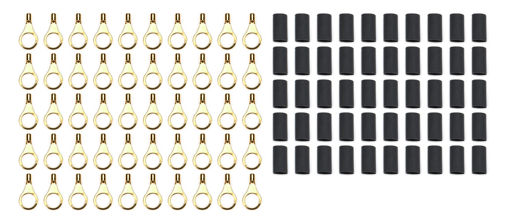 Ring Terminal - 22-18 Gauge Wire - 5/16 in Hole - Heat Shrink Included - Copper - Set of 50