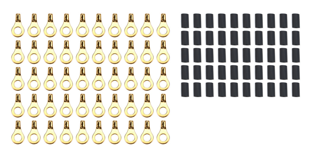 Ring Terminal - 12-10 Gauge Wire - 5/16 in Hole - Heat Shrink Included - Copper - Set of 50