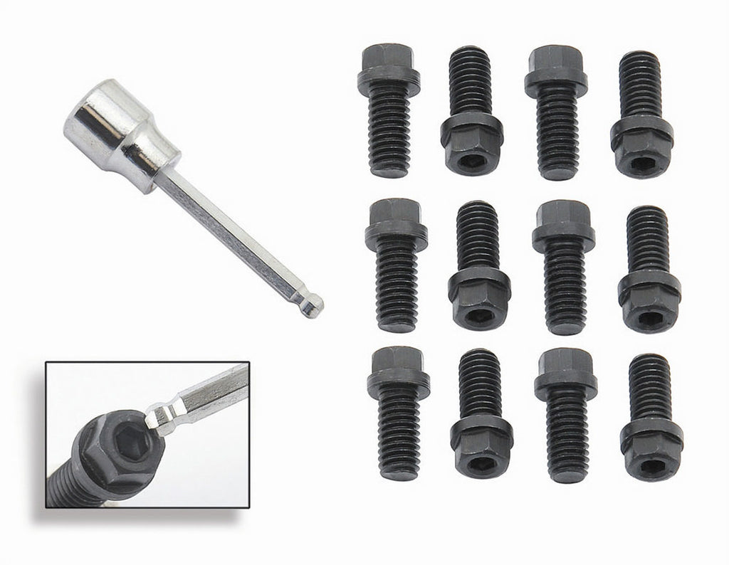 Header Bolt - 3/8-16 in Thread - 0.75 in Long - Hex / Allen Head - Steel - Black Oxide - AMC V8 / GM V8 / Mopar B / RB-Series - Set of 12