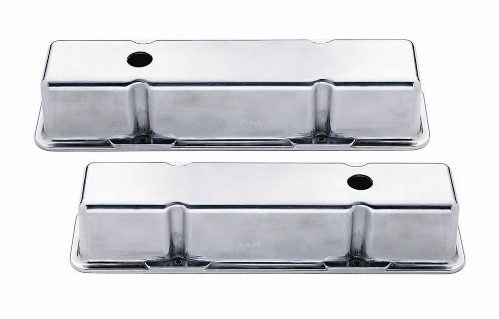 Valve Cover - Tall - Baffled - Breather Hole - Cast Aluminum - Polished - Small Block Chevy - Kit