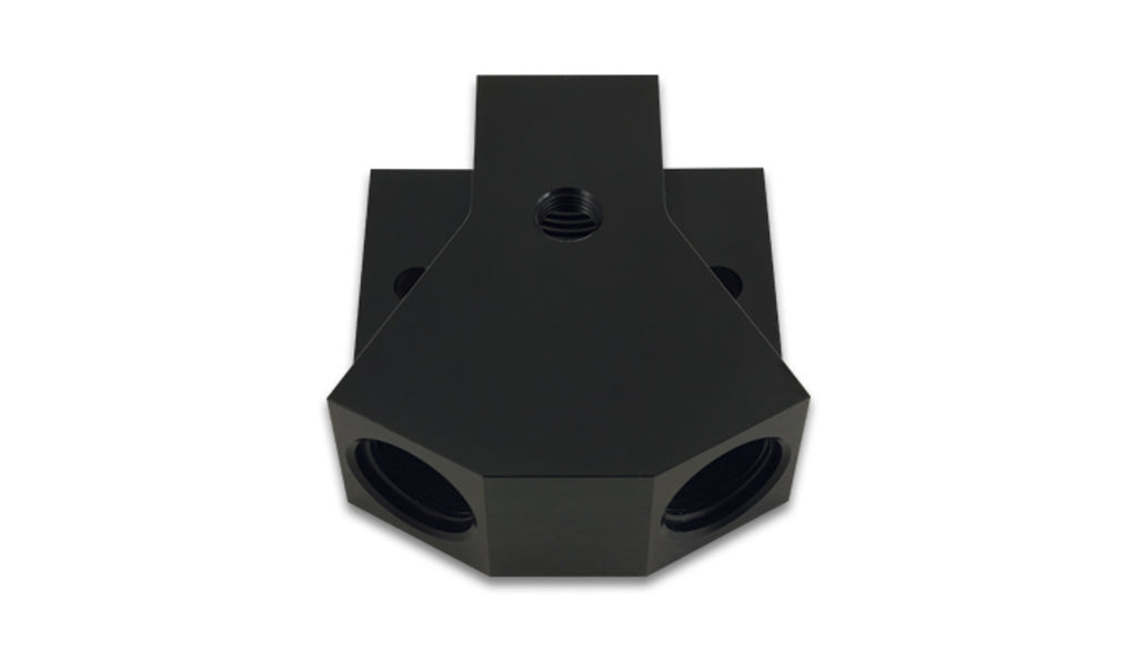Fitting - Y Block - 10 AN Female Inlet - Dual 8 AN Female Outlets - 1/8 in NPT Female Port - Aluminum - Black Anodized - Each