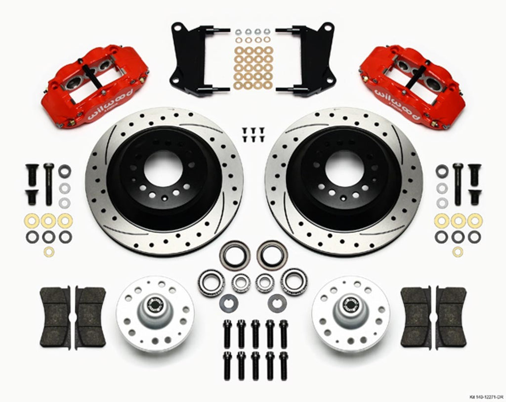 Brake System - Forged Narrow Superlite - Front - 6 Piston Caliper - 12.880 in Drilled / Slotted Iron Rotor - Offset Hat - Aluminum - Red Powder Coat - GM A-Body / B-Body 1964-74 - Kit