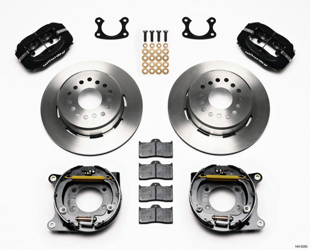 Brake System - Dynalite - Rear - 4 Piston Caliper - 12.000 in Plain Iron Rotor - Offset Hat / Parking Brake - Aluminum - Black Powder Coat - Small Ford - Kit