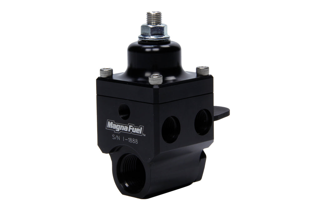 Fuel Pressure Regulator - 4 to 12 psi - In-Line - 10 AN O-Ring Inlet - Four 6 AN O-Ring Outlets - 1/8 in NPT Port - Aluminum - Black Anodized - E85 / Gas / Methanol - Each