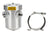 Breather Tank - Bolt-On - 4.5 in Diameter x 7 in Tall - 1 qt - Dual 12 AN Female Inlets - 6 AN Drain Plug - T-Bolt Mounting Clamp - Aluminum - Natural - Each