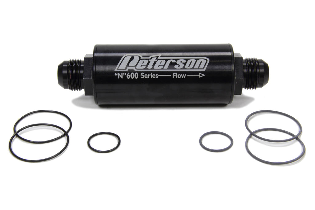 Fuel Filter - 600 Series - In-Line - 60 Micron - Stainless Element - 12 AN Male Inlet - 12 AN Male Outlet - Aluminum - Black Anodized - Each
