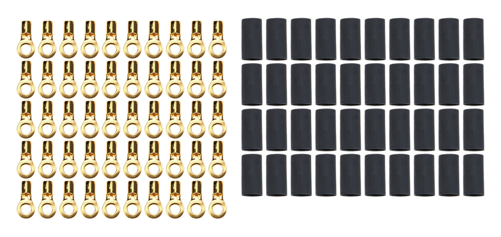 Ring Terminal - 8 Gauge Wire - 1/4 in Hole - Heat Shrink Included - Copper - Set of 50