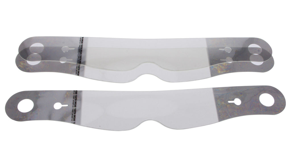 Helmet Shield Tear Off - Xstack 10 - 2 mm Thick - 11.5 in Center to Center - Nose Notch - Plastic - Clear - Simpson Helmets - Set of 30