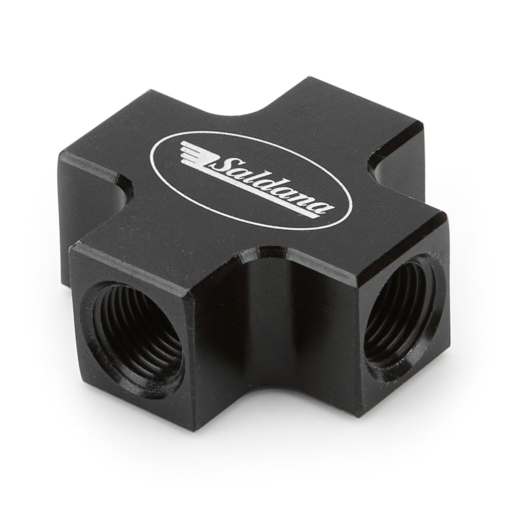 Fitting - Manifold - Four 3/8-24 in Female Ports - Aluminum - Black Anodized - Valve Cover Oilers - Each