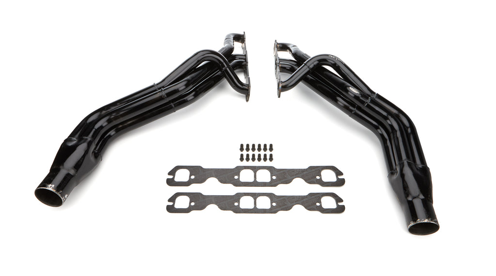 Headers - Stock Clip - 1.625 in to 1.75 in to 1.875 in Primary - 3 in Collector - Gaskets / Hardware Included - Steel - Black Paint - Small Block Chevy - Pair