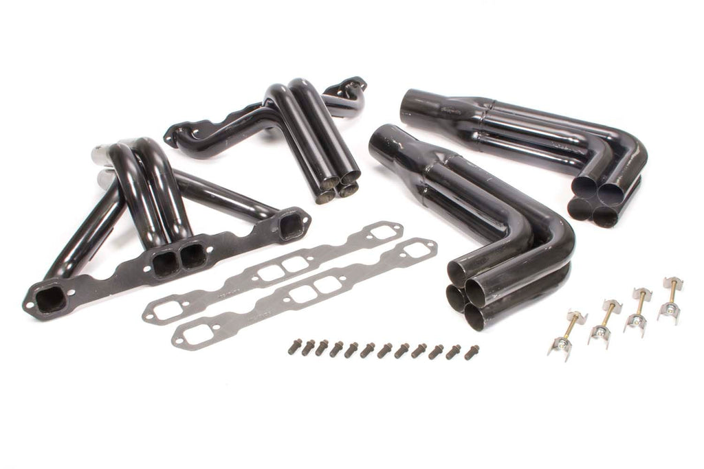 Headers - IMCA Modified - 1.75 to 1.875 in Primary - 3.5 in Collector - Gaskets / Hardware Included - Steel - Black Paint - Small Block Chevy - Kit