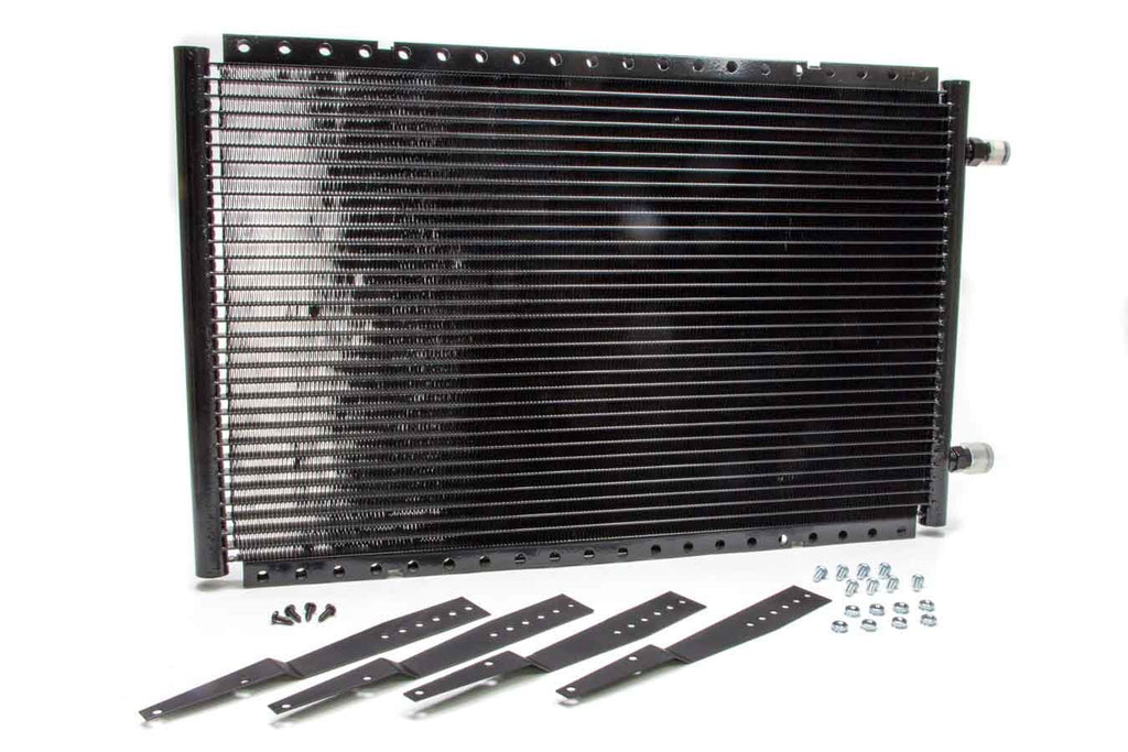 Air Conditioning Condenser - SuperFlow - Horizontal - 22 x 14 x 0.83 in - 6 AN / 8 AN Male O-Ring Fittings - Brackets - Aluminum - Black Paint - Each
