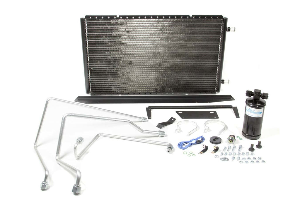 Air Conditioning Condenser and Drier - SureFit - Horizontal - 24 x 14 x 0.83 in - 6 AN / 8 AN Male O-Ring Fittings - Aluminum - Black Paint - GM Fullsize Truck 1967-72 - Kit