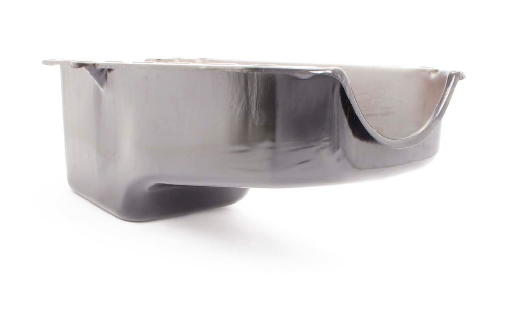 Engine Oil Pan - Rear Sump - 4 qt - Stock Depth - Steel - Black Paint - 2-Piece Seal - Small Block Chevy - Each