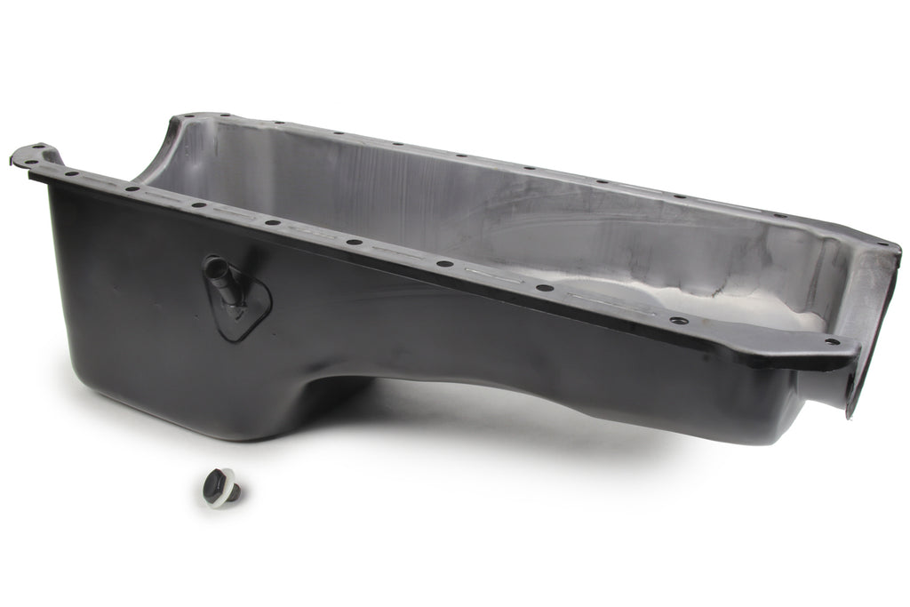 Engine Oil Pan - Rear Sump - 4 qt - Stock Depth - Steel - Black Paint - 2-Piece Seal - Big Block Chevy - Each