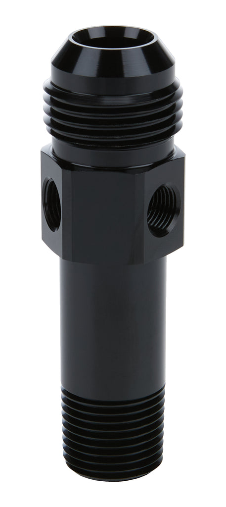 Extended Oil Inlet - Straight - 12 AN Male to 1/2 in NPT Male - 3 in Long - 1/8 in NPT Female Port - Aluminum - Black Anodized - Each
