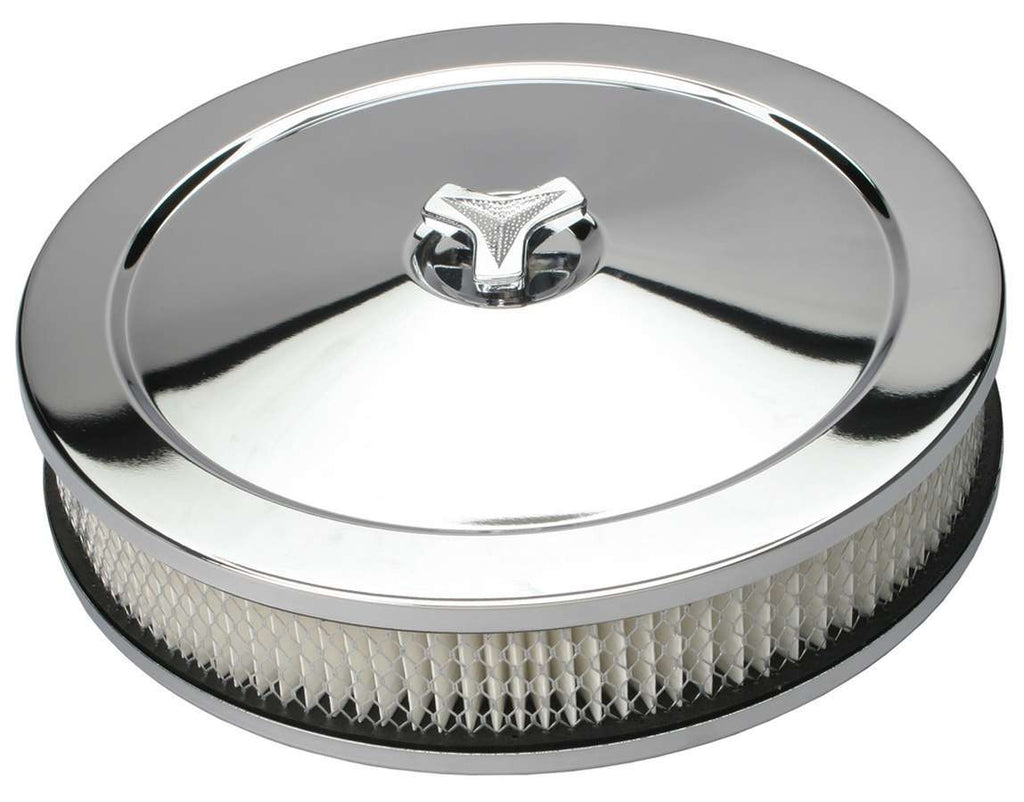 Air Cleaner Assembly - Muscle Car - 10 in Round - 2.125 in Tall - 5-1/8 in Carb Flange - Raised Base - Steel - Chrome - Kit