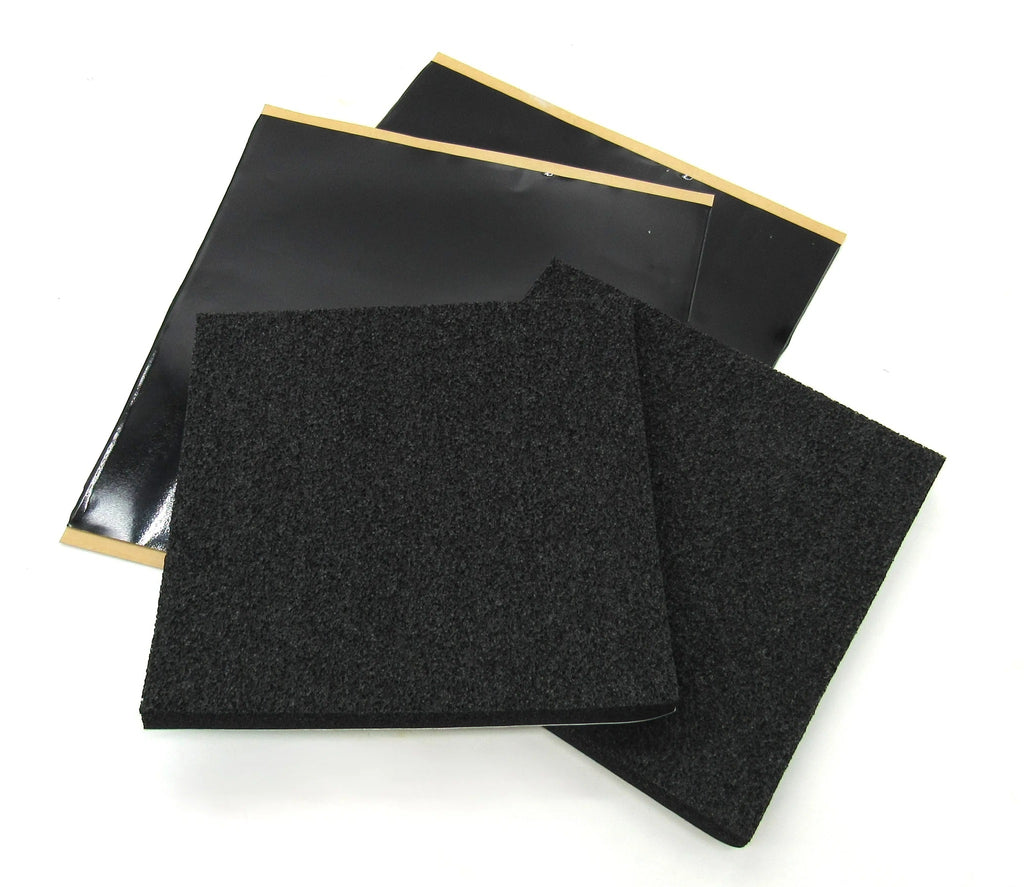 Heat and Sound Barrier - Two 8 x 7 in Sheets - Two 10 x 10 in Sheets - 2 mm Thick - Rubber - Black - Kit