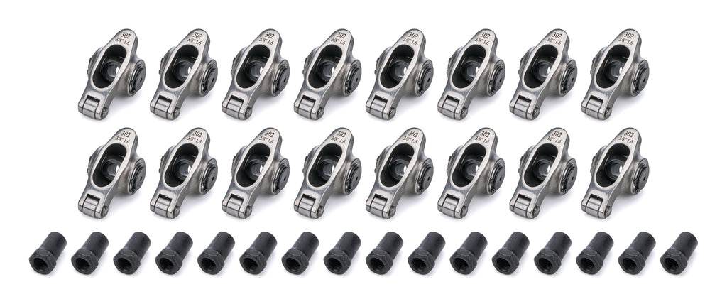 Rocker Arm - Elite Series - 3/8 in Stud Mount - 1.60 Ratio - Full Roller - Stainless - Small Block Ford / Oldsmobile V8 - Set of 16