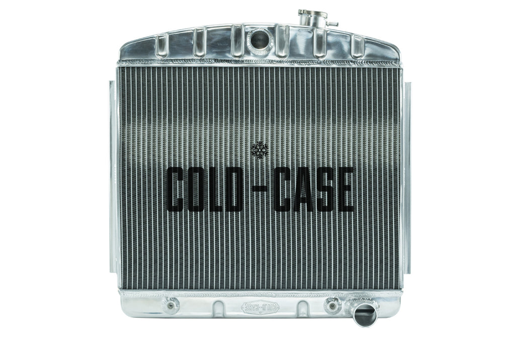Radiator - 23.5 in W x 23.5 in H x 3 in D - Center Inlet - Passenger Side Outlet - Aluminum - Polished - Chevy V8 - Chevy Fullsize Car 1955-57 - Each
