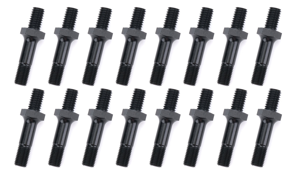 Rocker Arm Stud - 7/16-14 in Base Thread - 7/16-20 in Top Thread - 1.775 in Effective Stud Length - Steel - Black Oxide - Small Block Chevy - Set of 16